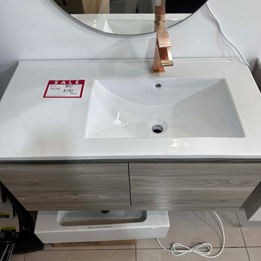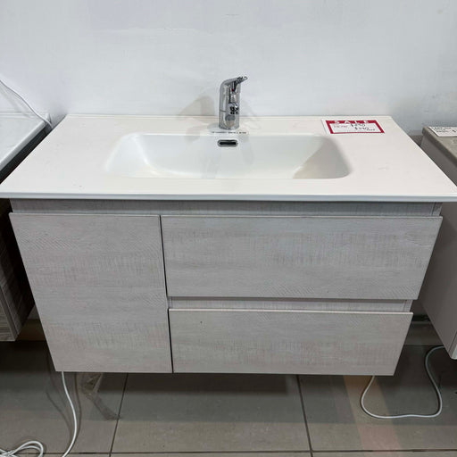 900mm Light Grey Wood Vanity with White Under-Mount