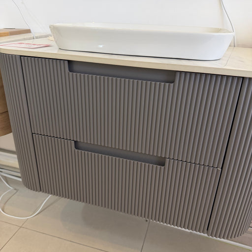 Charcoal Grey Fluted Curved Wall Hung Vanity with Stone Top and Semi-insert Basin