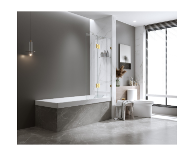 Fully Frameless Over Bath Fixed & Swing 1450mm | Shiny Gold