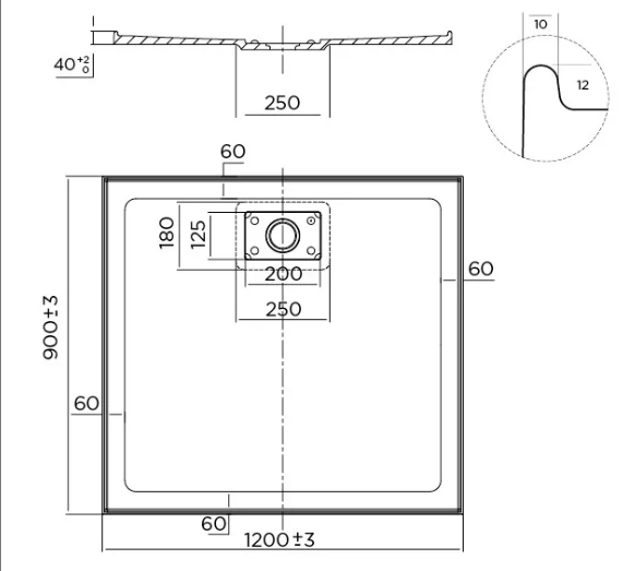 Metro Rear Outlet Shower Base 1200 x 900mm